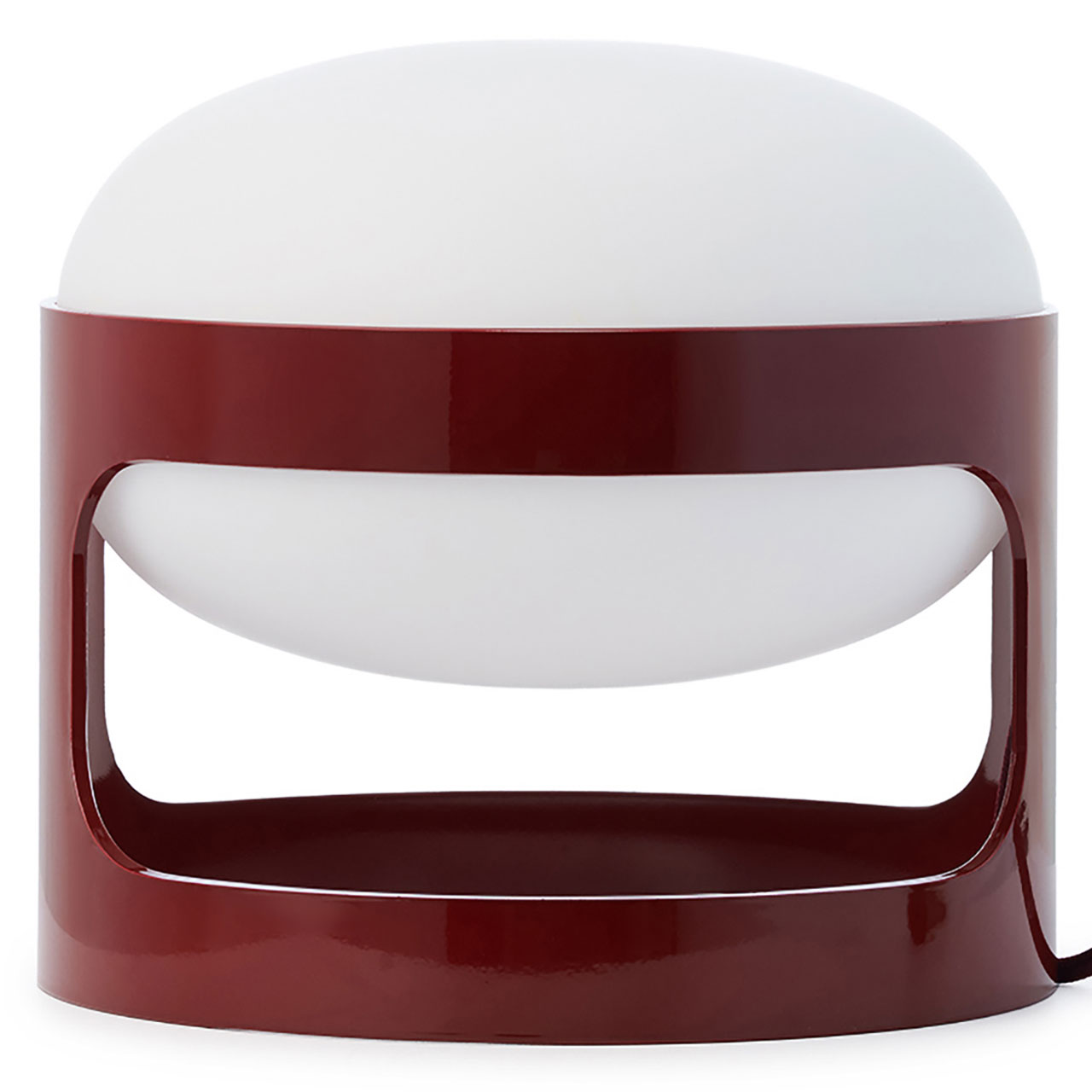 For a classic lamp in a modern color, the KD28 LED Table Lamp shines here in a stylish Burgundy. This renewed edition of the 1967 Joe Columbo original features a wide, generous globe with a satin finish, cased in the iconic low-set housing – now updated to recycled PMMA.