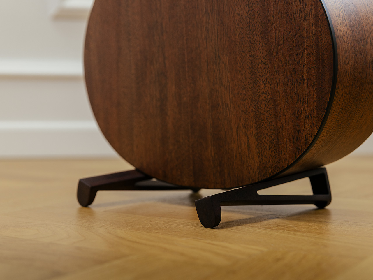 From the largest pieces of offcuts, a slim but substantial guitar stand emerges, forming an almost trompe l’oeil vase when not in use. A Nordic horse, carved from the leftover pieces from fashioning the neck, take new life as an included capo, giving the fingers a bit of a rest. From the cutout of the center, a coaster takes new life, bringing a touch of the guitar outside the body, allowing an extension of play. These three products give new life to remnants, prompting us all to rethink the way we discard.