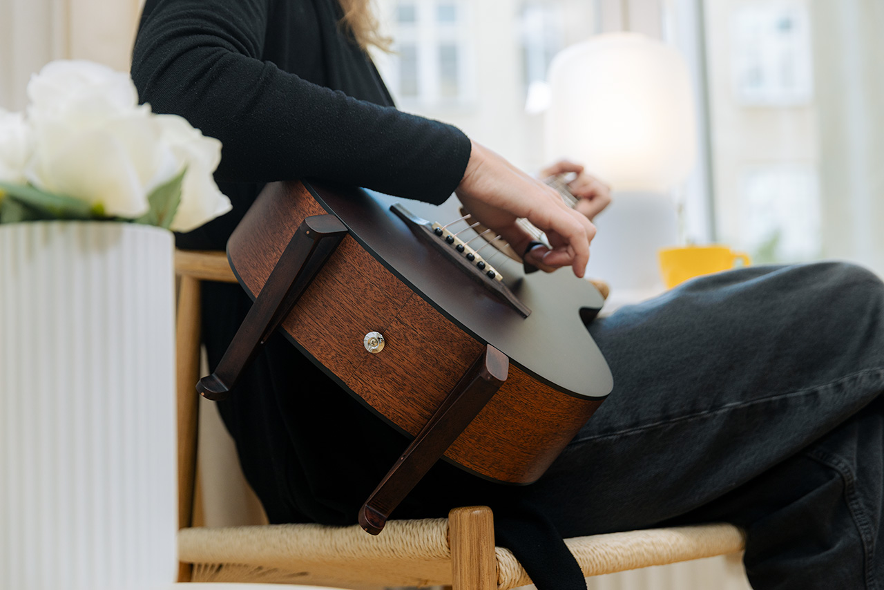 Since the stand is included, Harmoni is always at an arm’s reach, always handy for a quick jam sesh, or just some light noodling. The stand is magnetic, with small magnets inset on the inside of the guitar, for seamless transition between standing and playing. There is something quite powerful about being able to grab the exact tool for the job, and sometimes, this translates into a simple melody on a winter’s day.
