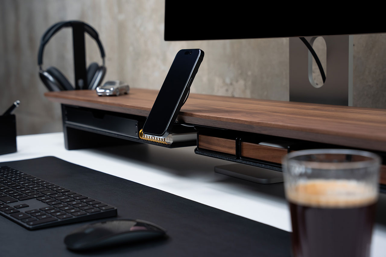 The accessories on offer include a laptop riser and dock; storage trays; various MagSafe holders; and mounts for tablets, watches, and other unexpected gadgets. Like the preexisting Smart Accessory Holder—engineered for screens with additional controls and apps—the just released Controller Holder is defined by its minimal, form fitting profile, holding mobile or cord-connected game-play controllers in place just at the right balance point.