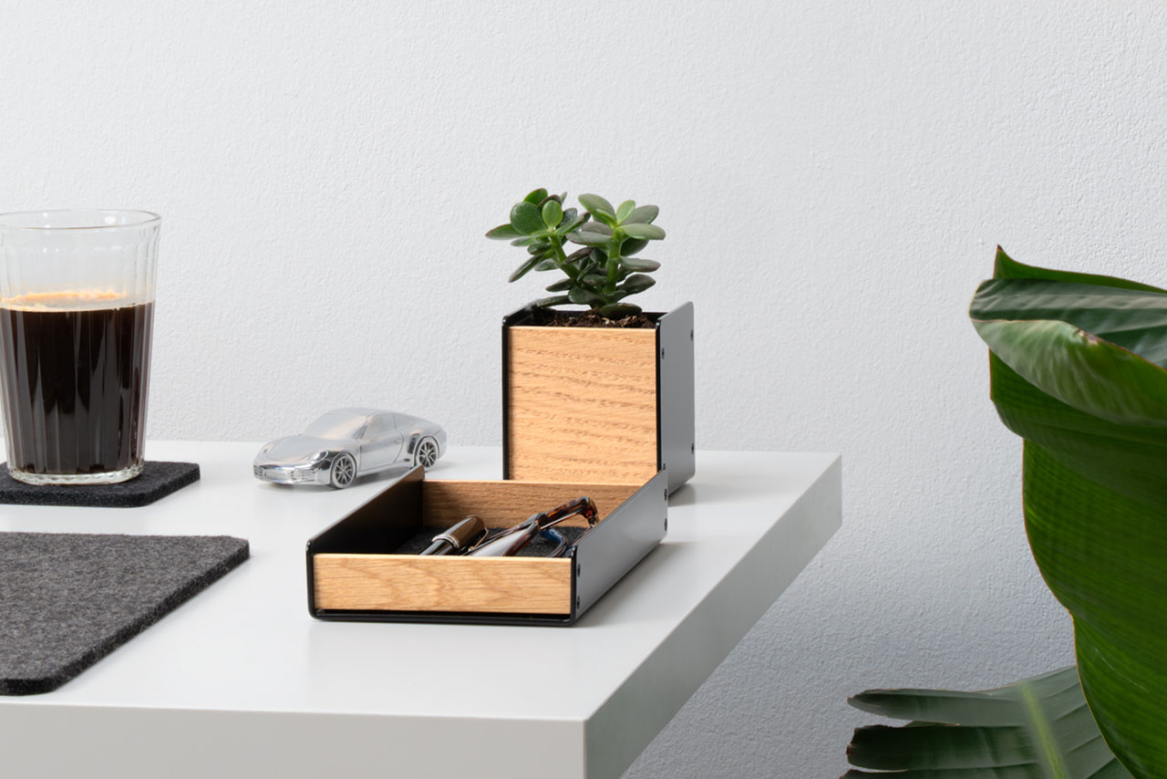 The main, straightforwardly designed, platform is made of quality hardwood—variants include American hardwood, Oak, Black stain—and steel. The endless array of added-on components reflect that same level of German engineering and hyper-efficiency. The ever-extrapulated system lends itself particularly well to personalization and hence, better functionality.