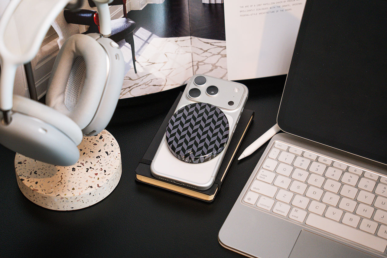 We’ve all felt it. The pit in the stomach. 1% – and then a black screen. Your phone is dead – and now you have to do something about it. In our highly digital world, a well-placed charge can mean more photos on vacation, but it could also mean safety, security, and essential communication. Charging cases have proven to be quite bulky, and external batteries usually seem to be many times heavier than an actual phone. As our digital footprint becomes more and more important, ALMA is a magnetic, truly wireless portable charger, seamlessly fitting in to your existing routine. With the new Print Theory Capsule collection from Addition, snap in to a new era of charging with prints inspired by favorites in luxury fashion, including snakeskin, denim, and black leather.