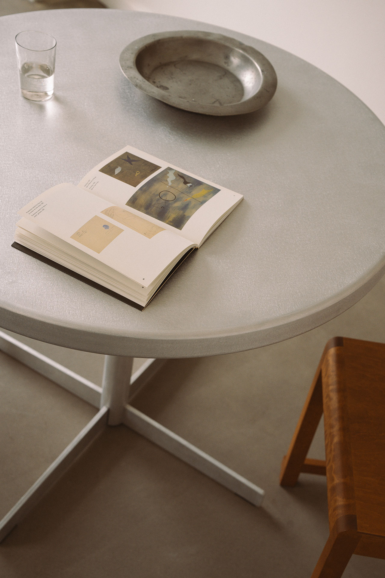 At first, the Tasca Table seems like something you’ve seen before – a solid ‘x’ creating the base, a singular cylindrical leg, and a circular top. In simplicity, technical detail is obfuscated within minutia, for those who look to find it. Subtle but intentional variation emerges within the hand-wrought finish, a graceful patina developing over time. As the aluminum is left bare, signs of wear are natural and welcome, a sign of a life well-loved.
