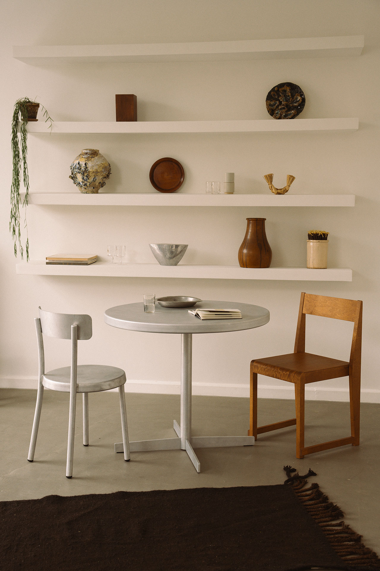 A luminosity emerges in soft light, almost seeming to glow from within. As aluminum is strong, light, and endlessly recyclable, it was a natural choice for the team to expand their collection of aluminum pieces, adding a sustainable lens to the project. As we dive into a new era of the anthropocene, it is our duty and privilege as designers to take stock of how we create, and to design within the flow of our natural world, not against it. FRAMA continues to explore this balance – inviting us to take our time, and feel good in doing so.