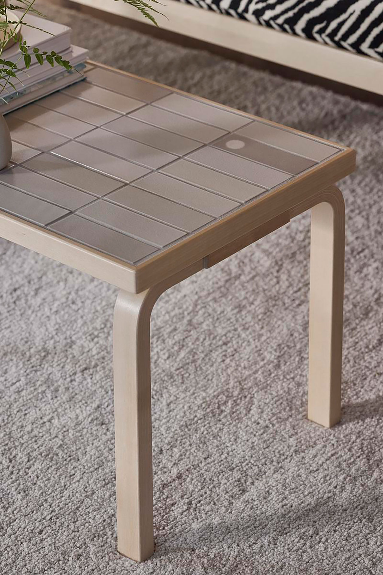 This extended proposition – the fusing of historic ceramicist Edith Heath’s deftly proportioned and toned tiles with Alvar Aalto’s Table Square—isn’t just aesthetic. The practical, durable and even hygienic application of fully glazed ceramic tiles as a table finish can’t be overlooked. One has only to consider the especially efficient and cost-effective kitchen countertops of the 1990s, replaced since by equally enduring but significantly more expensive natural stones.