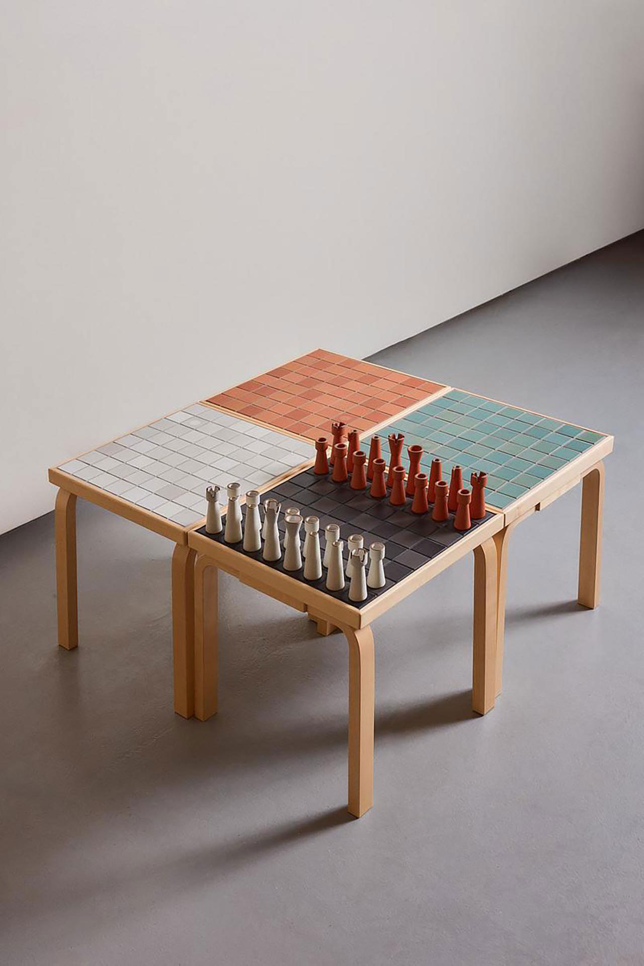 An added bonus: the Artek + Heath Chess Table. Though the brand identifies this clever application as a call back to Max Ernst chess table at Villa Mairea—designed by Aino and Alvar Aalto, this ingeniously unexpected second application seems to have naturally emerged from the coherence of tile and table typologies—an impromptu game board with segmented tiles doubling as chessboard files. To mark the moment, hand-thrown and hand-glazed ceramic chess pieces were imagined according to the previously outlined philosophy. The possibilities of pattern configuration and unexpected function are ostensibly, endless.