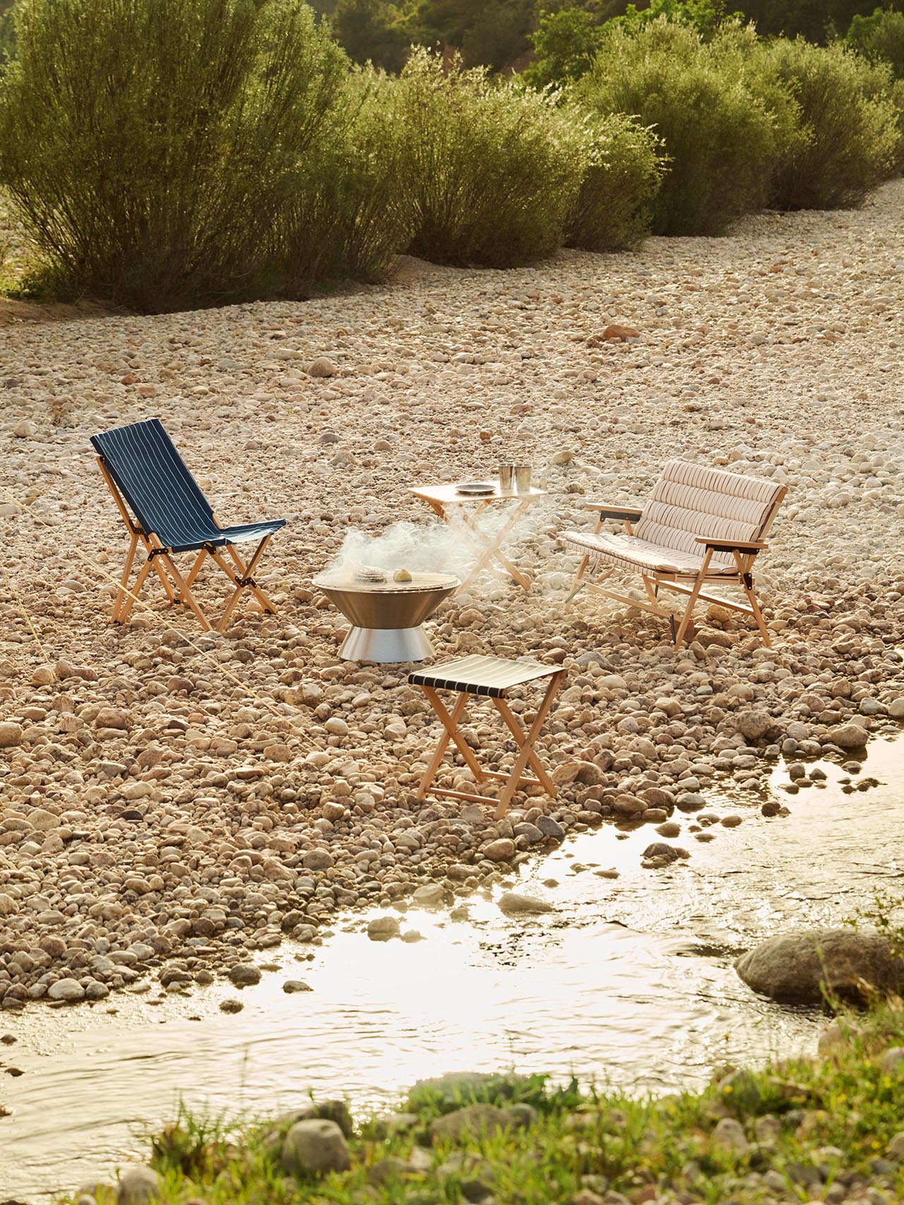 The comprehensive range is as suited for a few days prospecting in the wilderness as for a beach day, afternoon picnic, or evening backyard hang. Included are folding armchairs and love seats that can be quickly stored away. They’re far more refined and essentialized than the unsightly, collapsible metal pole camping chairs sold at the local camping store. It makes the prospect of spontaneously heading out far more appealing and tenable.