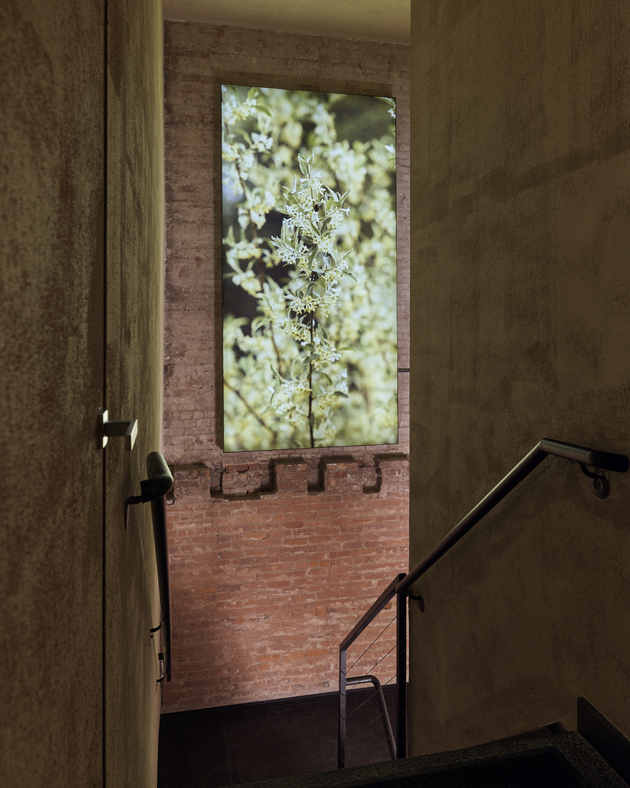 Behind a nondescript facade flanking Broadway as it climbs up through the bustling pocket neighborhood of NoHo, Lore unfolds as a 6,200-square-foot facility. Upon entering, members descend two separate staircases, one for women and the other for men, only to discover long, well-appointed changing and shower rooms. They re-emerge on either side and are fully immersed in the monumental sauna and cold plunge chamber. Along the way, they’re guided by a gradually evolving, sensorially cued palette of colors, materials, and textures. White warm travertine encircles the pool, the sauna is wrapped in dark, chocolate toned, alder wood. The bold yet gentled transitioned scheme evokes the sharp contrast of putting one’s body through thel extremes of “hot and cold.”