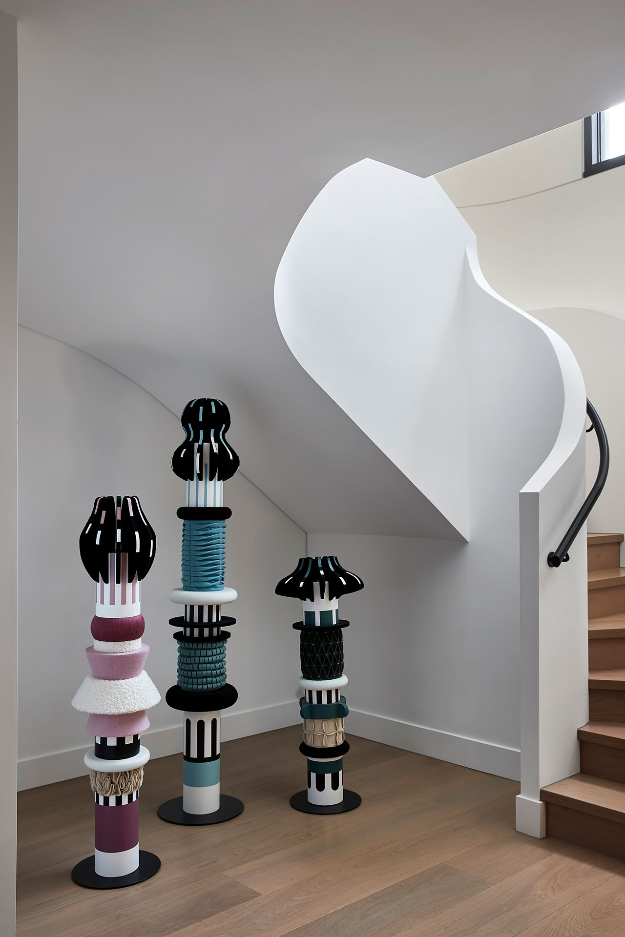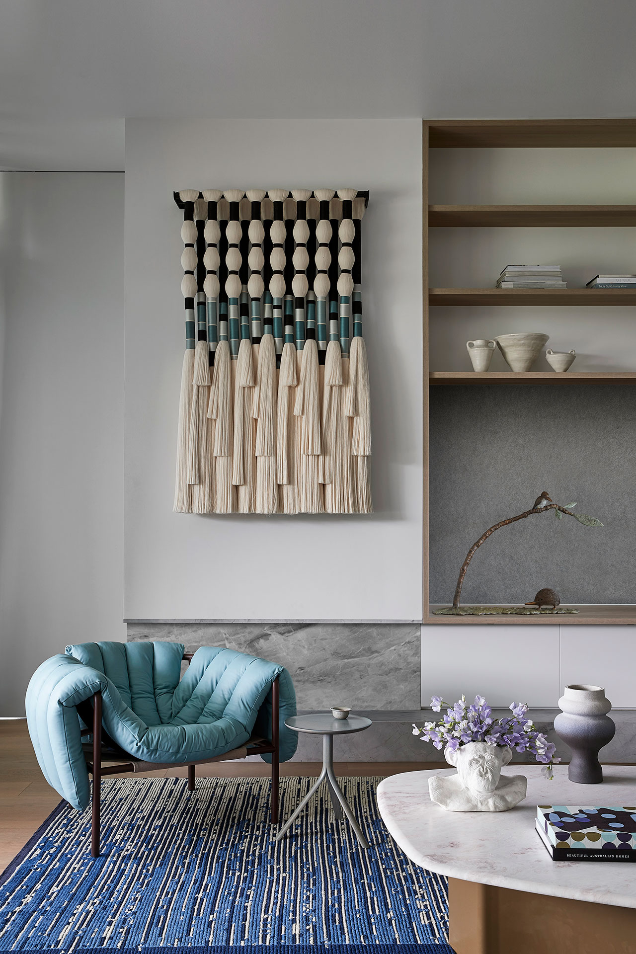 Artworks were sourced across Australia and internationally, including a large-scale textile commission from Mexican studio Caralarga. Custom lighting, hand-built ceramic totems, and bespoke furniture from local makers reinforce a sense of collaboration.