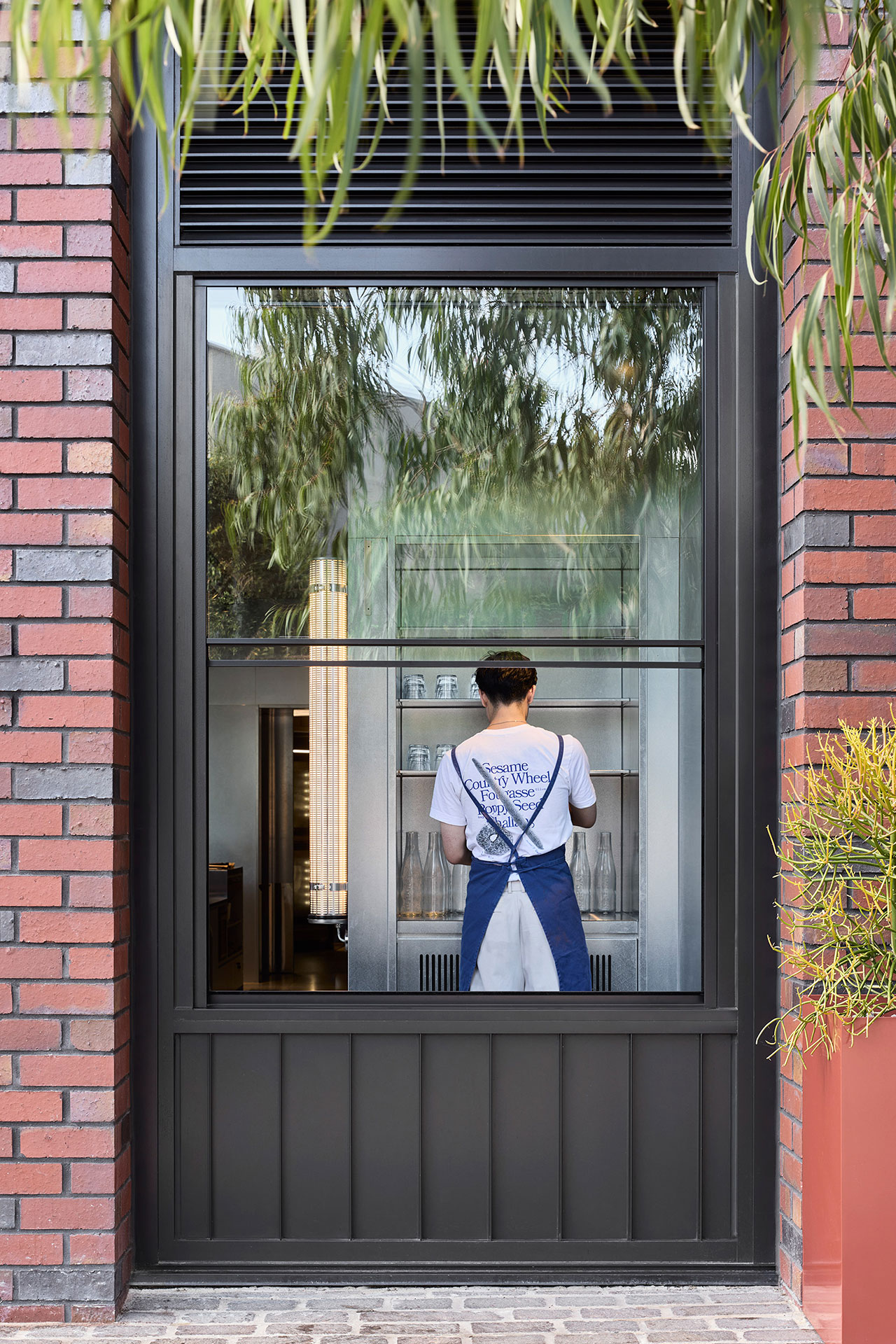 Discerning guests may draw the elusive parallel between architecture and bread-making that is embedded in the project’s philosophy. Both rely on repetition, refinement, and time to perfect. Here––where space, graphic detail, and baking converge––artisinal bread is refining the bakery typology while acting as both product and final flourish. It’s something warm to be touched, a texture translated into the walls, and a ritual embedded in the very structure of the space itself.