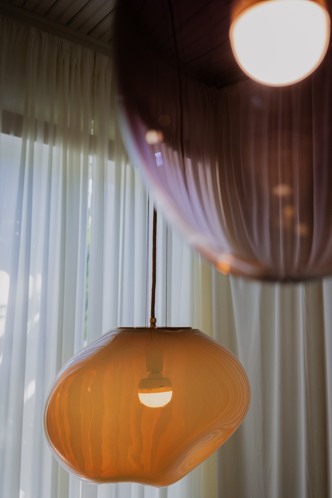 Crafted in the Czech Republic, Constellation by ELOA Unique Lights floats like luminous soap bubbles in space. The mouth-blown glass pendants reveal vibrant color by day and a warm, calming glow by night.