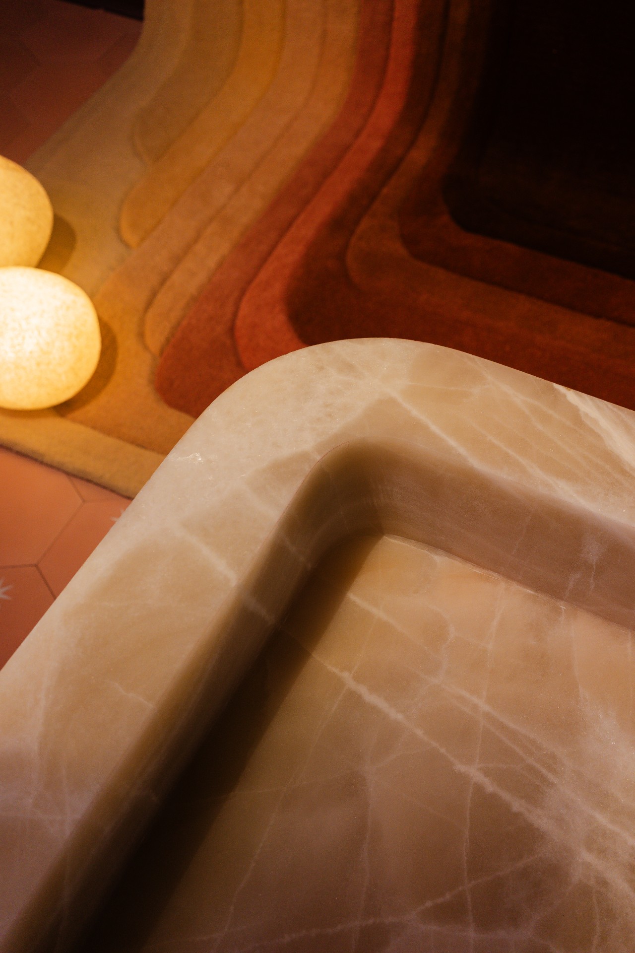 Carved from a single block of San Luis Onyx, the M_001 Chair by Monolith is a study in minimal geometry, where material and form reinforce one another. Also by Monolith, the M_014 Lamp applies the same restraint in cast aluminum. The diffused light emerges from two circular caps, asserting its function as a lamp without overshadowing its presence as a collectible object.