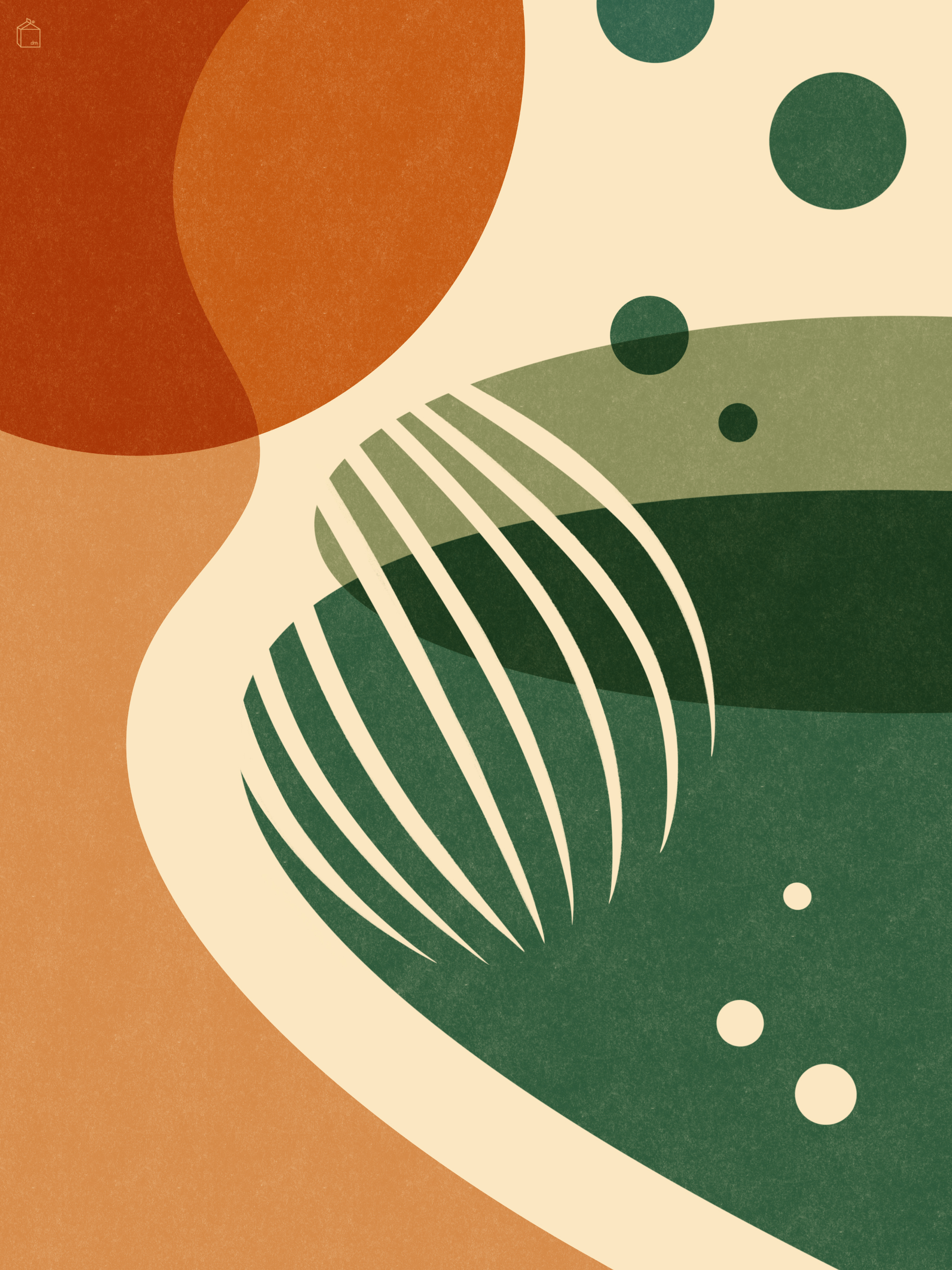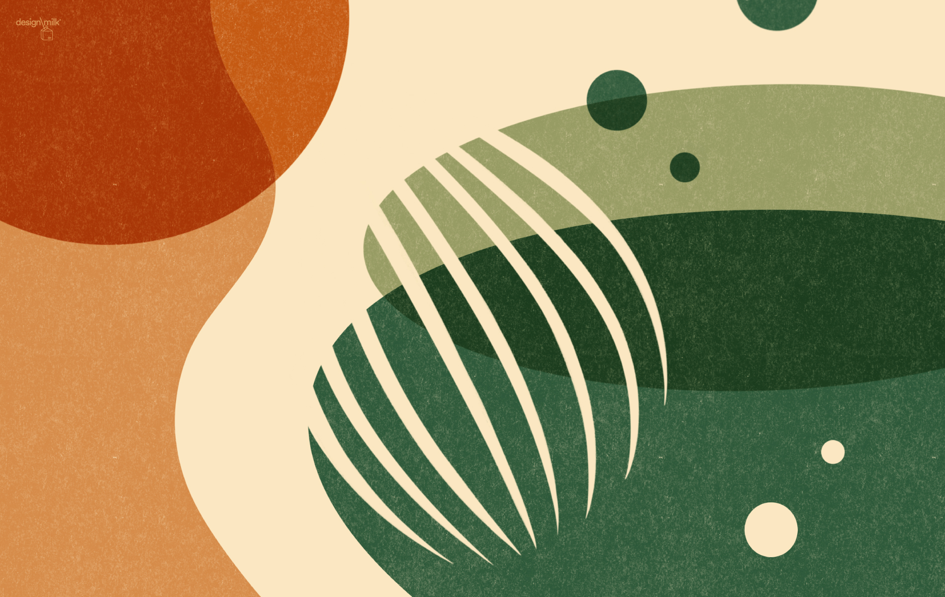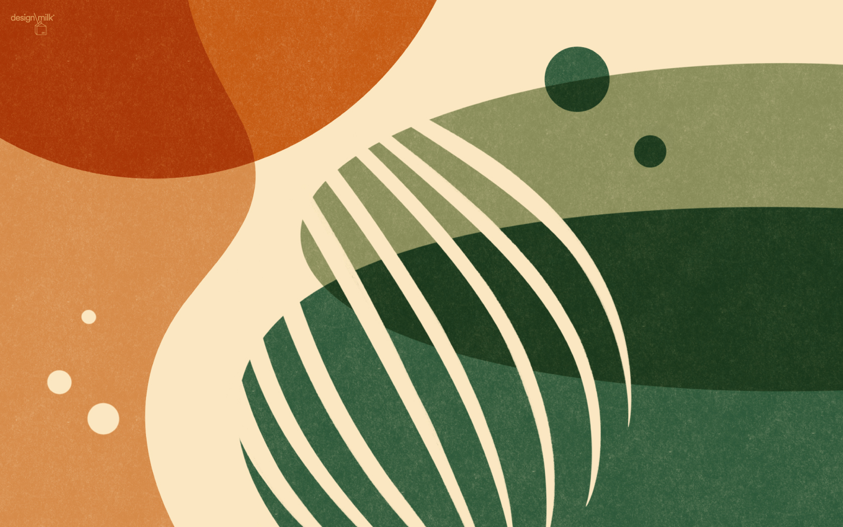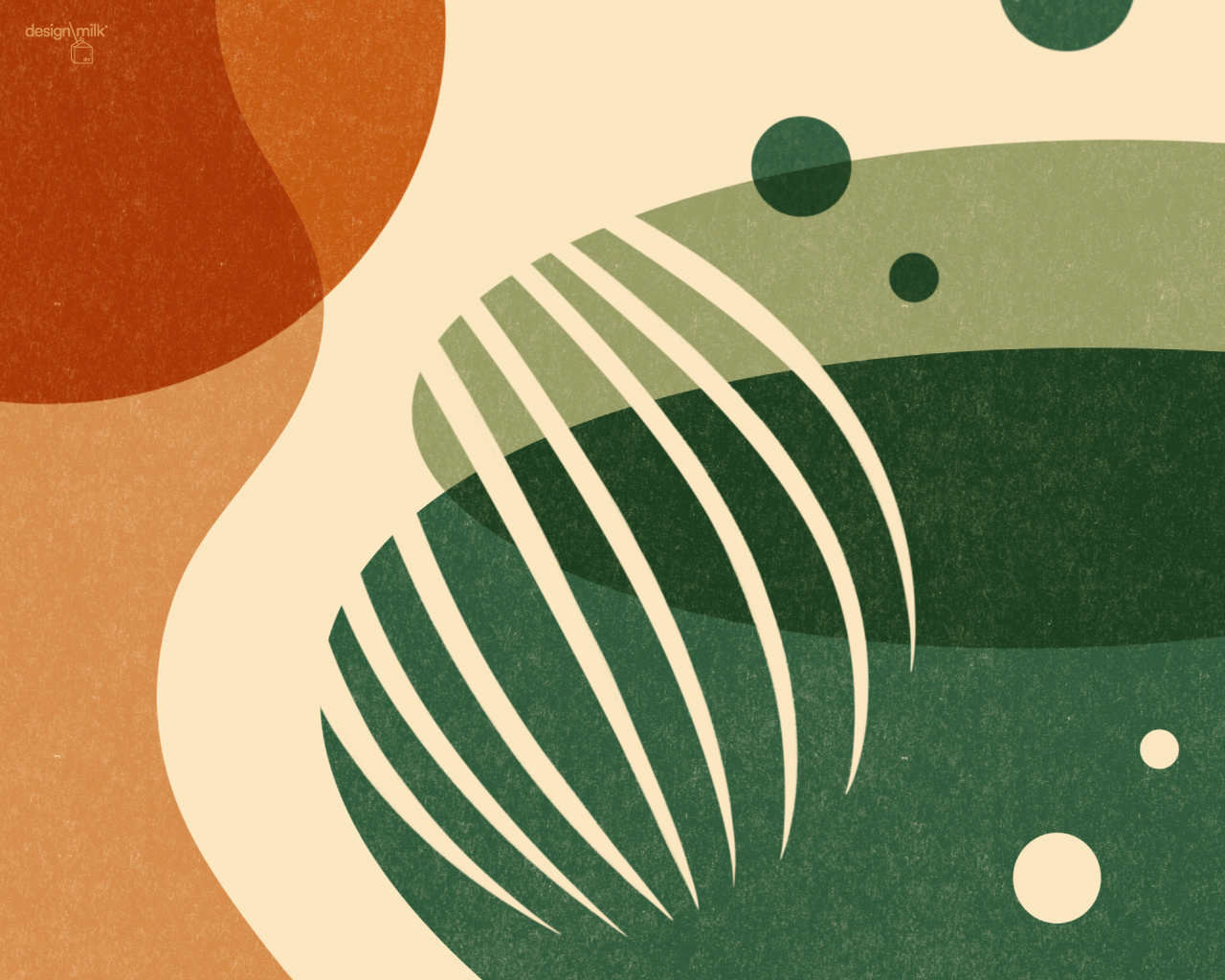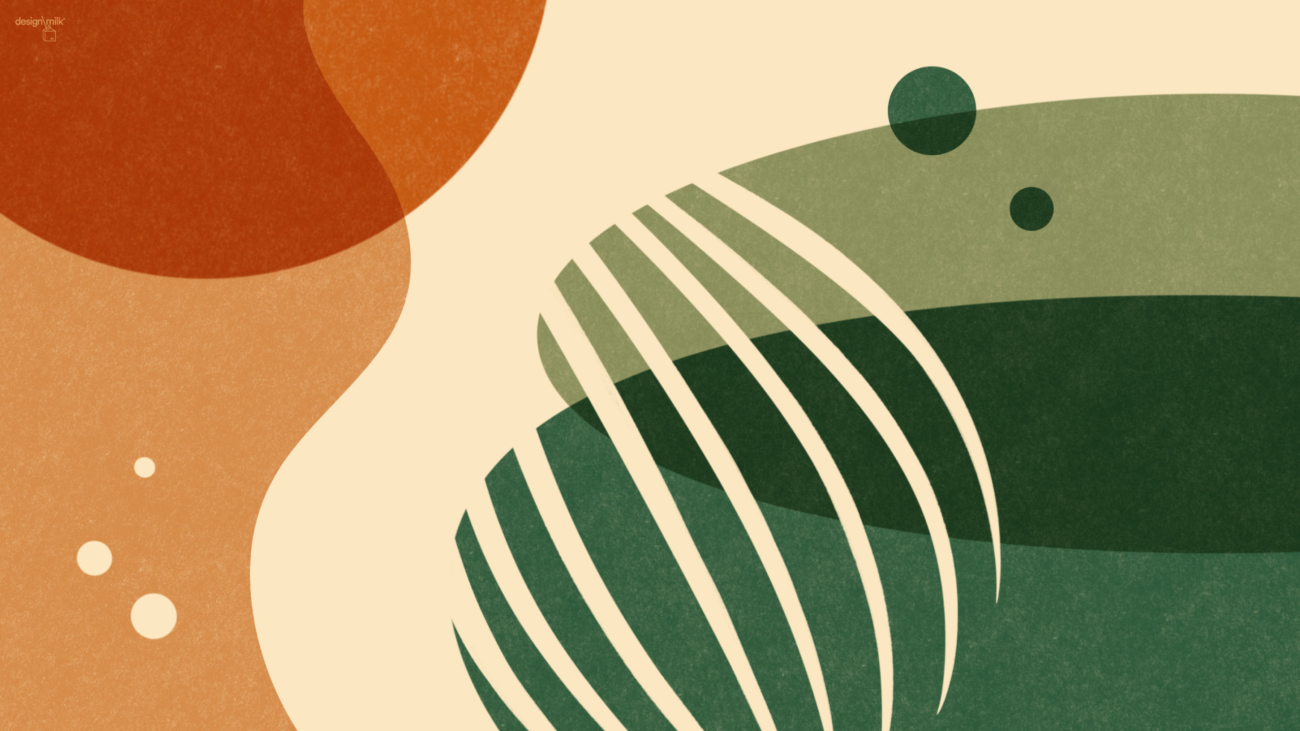 This month’s design feels quietly grounding, drawing on organic shapes and earthy tones that echo nature – like oversized lily pads and rolling hills. It offers a tranquil visual retreat for the eyes, serving as a calming backdrop for all your tech devices.