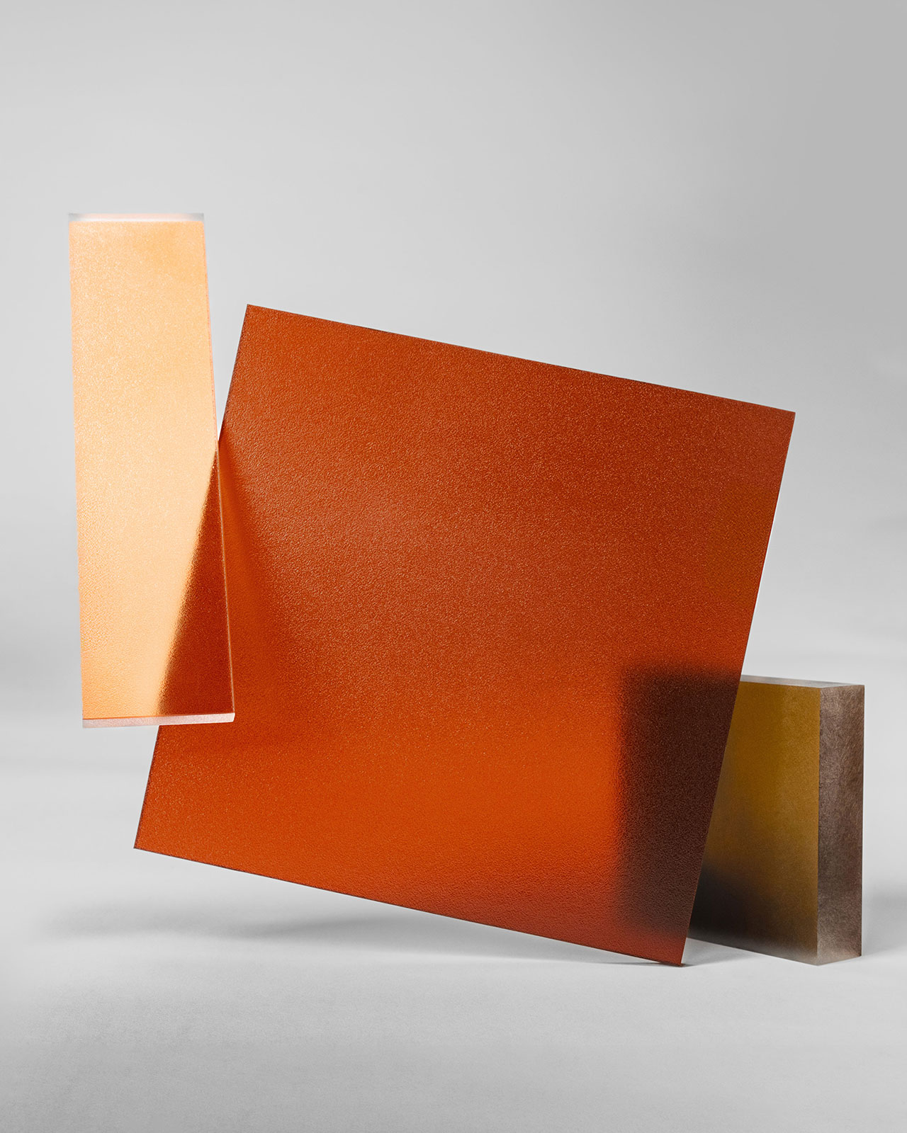 The collection is available in three materials and supported by a range of hardware. Signature Varia panels have a standard sandstone finish on both sides, ideal for partitions or room dividers. Chroma panels with vellum finish are suitable for tabletops and shelves. Laminated 3form Glass panels are cut to size and offered in Low-Iron or Clear-Float finishes that are perfect for decorative wall features.