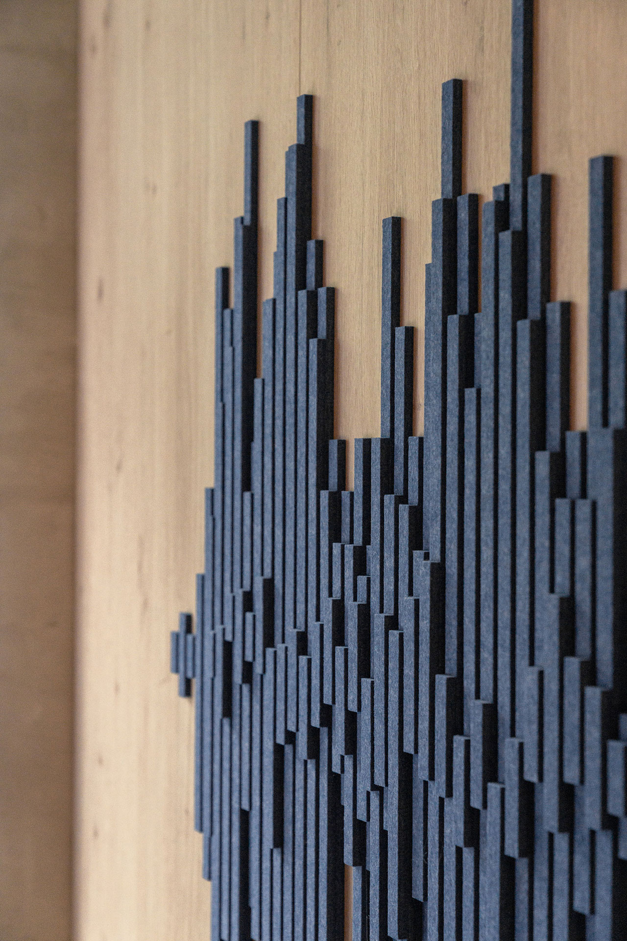 More than an office, the space doubles as a showroom-type environment that highlights sonic elements. “The design is built around sound, both functionally and visually,” notes Grzelecki.